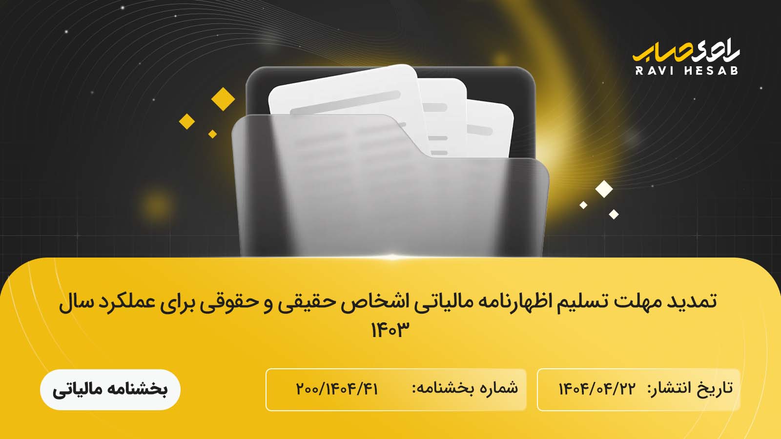 موضوع: تمدید مهلت تسلیم اظهارنامه مالیاتی اشخاص حقیقی و حقوقی برای عملکرد سال ۱۴۰۳